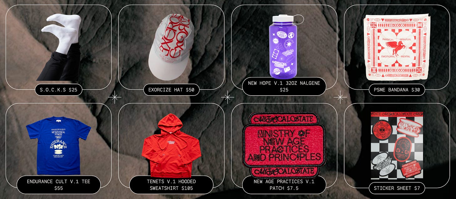 FOUNDING MEMBERS WILL RECEIVE QUARTERLY SWAG ATTACKS LIKE THE MCSWEENEY’S OF ENDURANCE for a one time annual payment of 250 dollars. MSO Swag Attack product drops feature rare, limited edition Cultural Artifacts commemorating some aspect of our Metaphysical Fitness journey through art and design. Each drop will be valued at 50-70 dollars each; from stickers, printed zines, t-shirts, hoodies, scarves, bandanas, pants flair, water bottles hats, technical t-shirts and bags to one-off colorways, limited editions and Kookzone Dyneema prototypes.